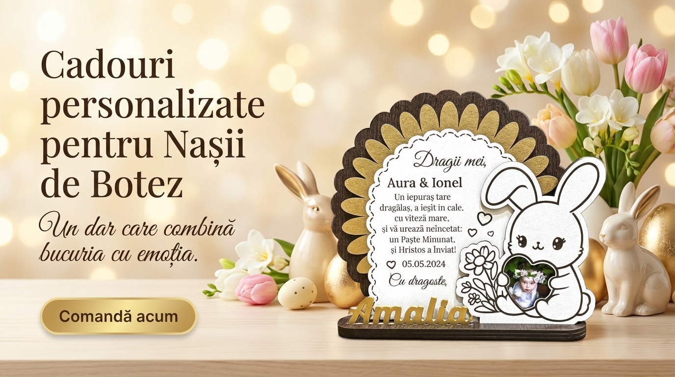 Buna ziua, am plasat comanda luni, iar joi am primit-o! A iesit exact cum mi-am dorit! Va recomand din toata inima,mai ales ca ati tinut cont de toate solicitarile mele si ari trecut si copiii pe trofeu. Va multumesc si pt cadoul oferit. Am primit si ounga de cadou! Foarte frumos! Cu siguranta voi reveni in curand! Mai am rude de surprins! ❤️?