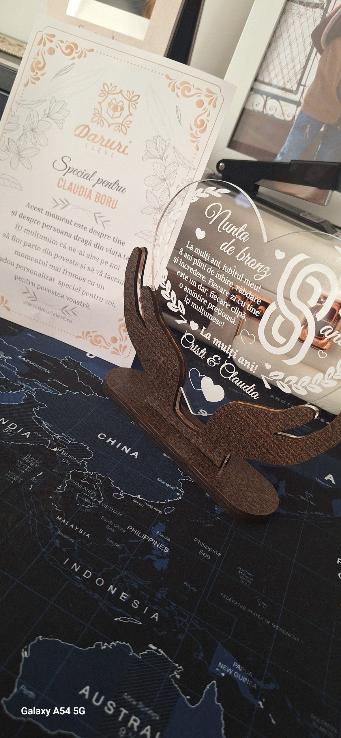 Pentru unii sunt mulți, pentru unii sunt puțini, dar 8 ani de căsătorie trebuie sărbătoriți cum se cuvine. Și cu siguranță momentul trebuie marcat într-un mod frumos. Iar un cadou personalizat din lemn wenge și plexiglas reprezintă obiectul perfect pentru a fi oferit. Personalizarea se realizează prin gravare, fapt care dă un aspect rafinat.