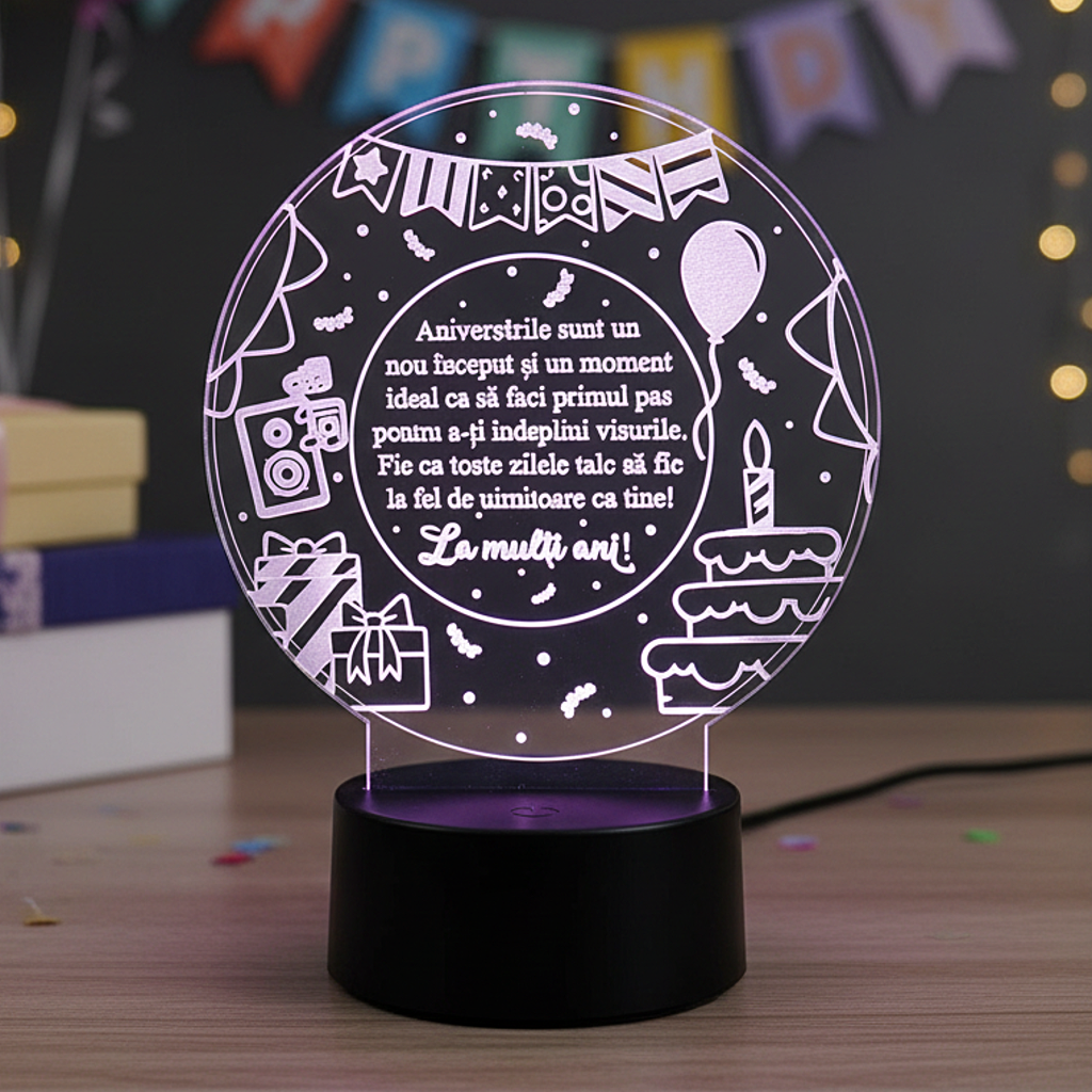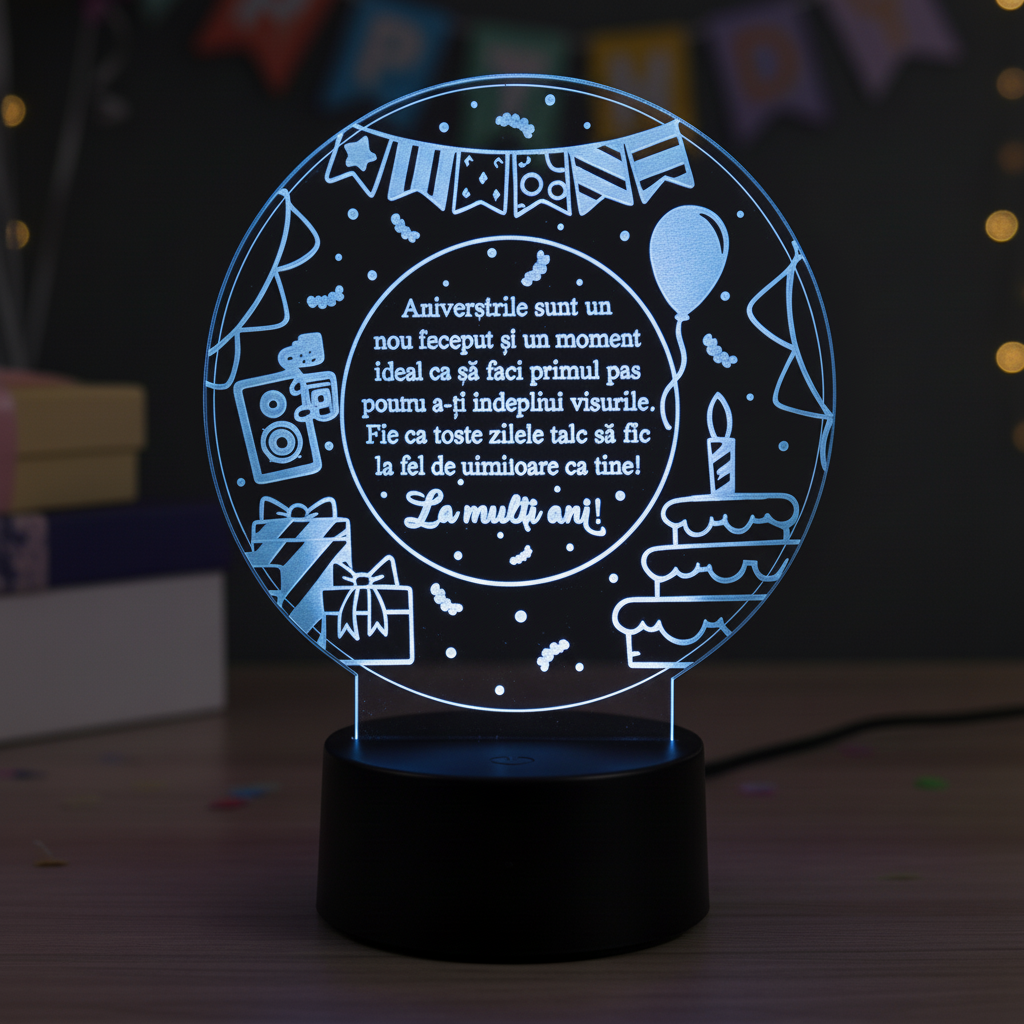 Aniversarea zilei de nastere este o ocazie mai mult decat potrivita pentru a-i oferi sarbatoritului un cadou unic, care sa fie creat pentru led. Iti sarim in ajutor cu acest cadou personalizat cu led, care te va ajuta sa iti exprimi gandurile bune si sincere.