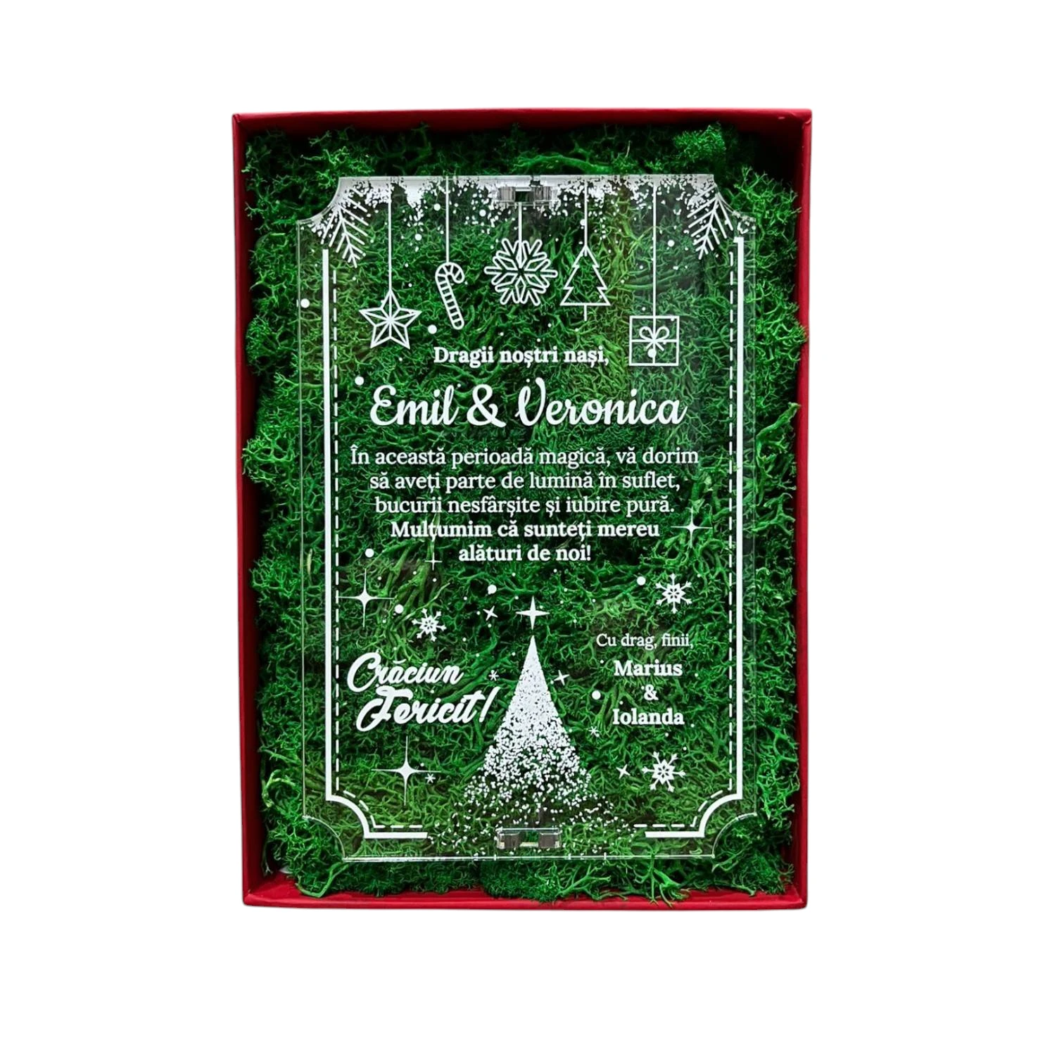 CADOU PERSONALIZAT Cutie cu licheni – Urare de Craciun pentru nasi