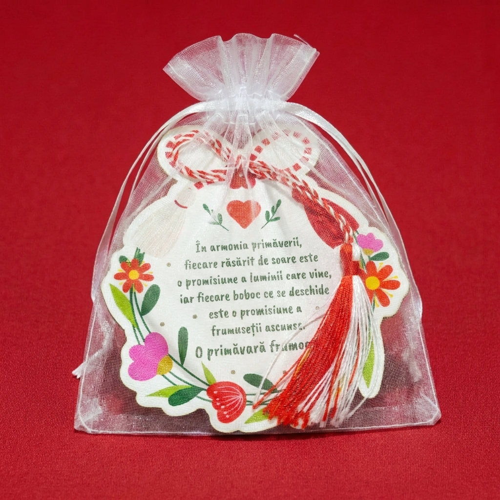 Primavara are un fel aparte de a ne aminti ca lucrurile frumoase vin intotdeauna. Acest martisor magnet este creat pentru cei care iubesc detaliile cu suflet: un design floral vesel, martisorul traditional cu alb si rosu, si un mesaj cald — „O primavara frumoasa!” — care il face un cadou mic, dar cu mult sens.