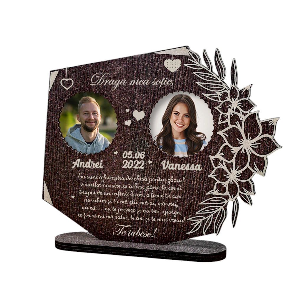 Acest trofeu personalizat, cu dimensiunile elegante de 18×22 cm, este realizat cu atenție pentru a reflecta emoțiile tale sincere. Fiecare detaliu al acestuia vorbește despre natura unică a relației voastre, fiind un simbol perfect al iubirii. Materialele premium folosite aduc un aer de eleganță, amintind de momentele speciale pe care le sărbătoriți împreună. Perfect pentru a fi oferit cu ocazia zilei îndrăgostiților sau a aniversărilor, acest cadou a fost apreciat de mulți, fiind îmbogățit de recenzii pozitive de la cumpărători fericiți care au ales să-și exprime sentimentele printr-un cadou deosebit.
