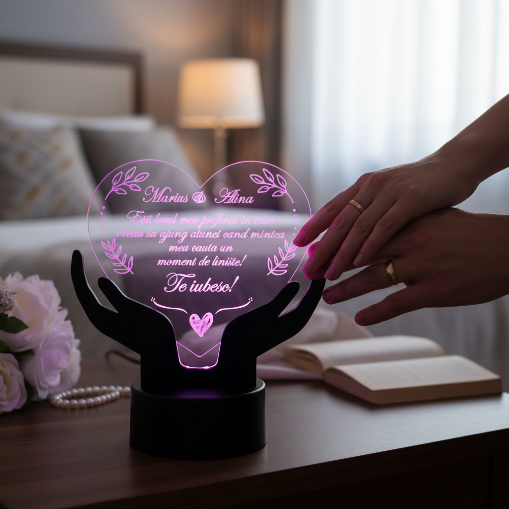 Desi suntem aici pentru a te ajuta sa gasesti un mesaj potrivit pentru ocazia speciala pe care o sarbatoresti, vom accepta cu siguranta si o sugestie din partea ta! Iti stam la dispozitie cu sugestii si idei de texte ce pot fi gravate pe minunata inimioara pe care doresti sa o cumperi. Dar totusi, daca ai alte planuri si doresti un mesaj mai personal, sau niste ganduri pentru persoana iubita, stai fara grija! Textul este personalizabil, astfel avand la dispozitie un cadou foarte maleabil.