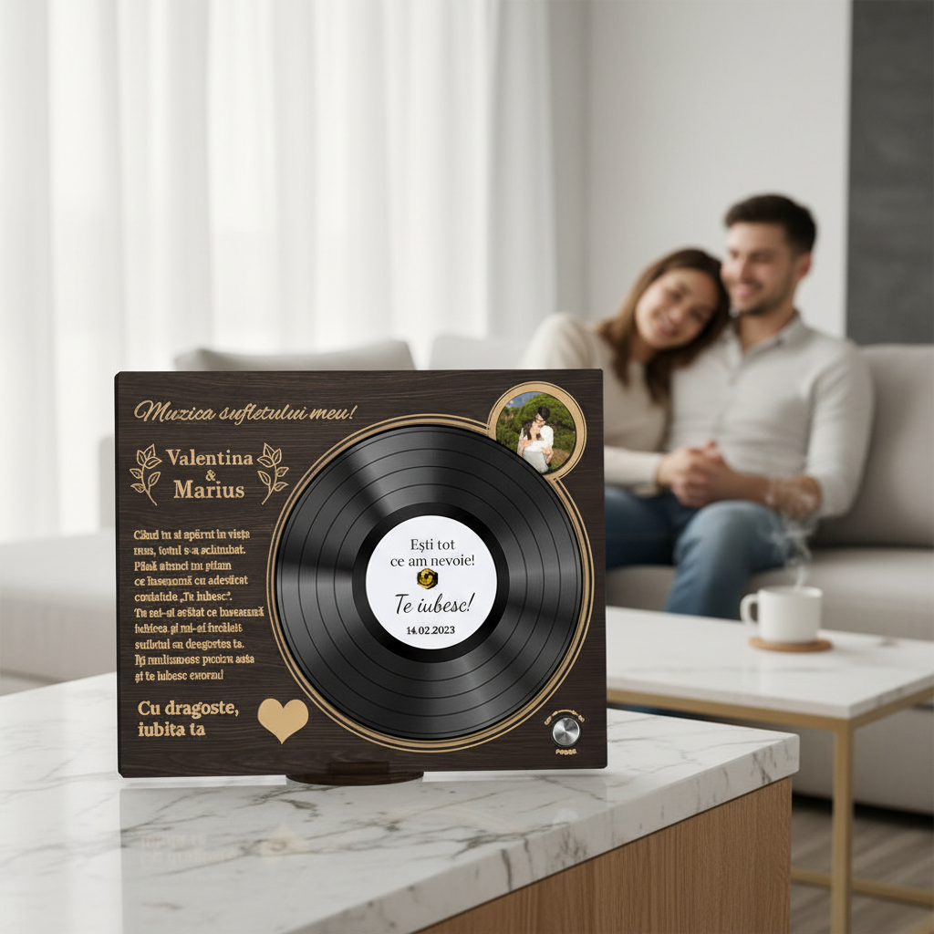 Cadoul perfect pentru el – placheta cu decor disc vinyl