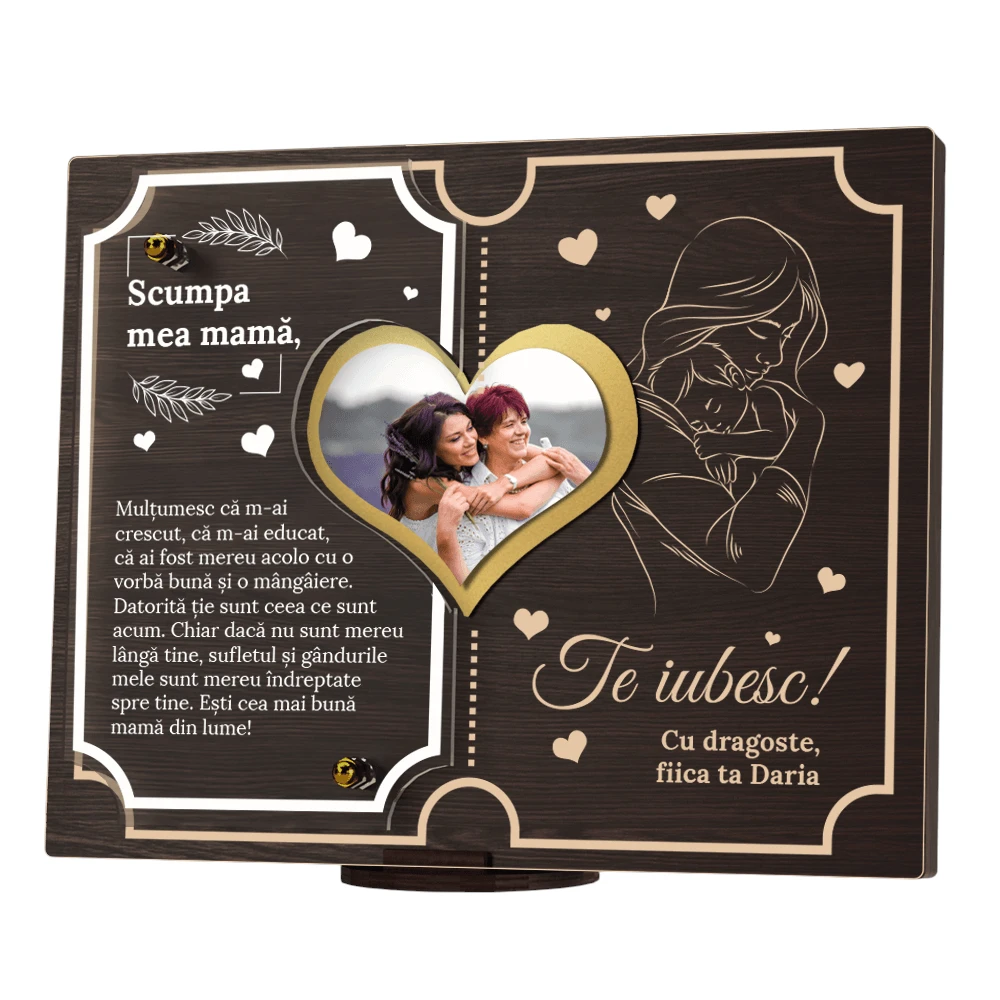 A oferi un cadou special de 1 sau 8 martie este o modalitate minunată de a-i arăta mamelor cât de mult le apreciem. O plachetă personalizată din pfl wenge și plexiglas, cu detalii aurii, poate deveni un simbol al dragostei și recunoștinței noastre față de ele, aducând un zâmbet pe chipul lor.