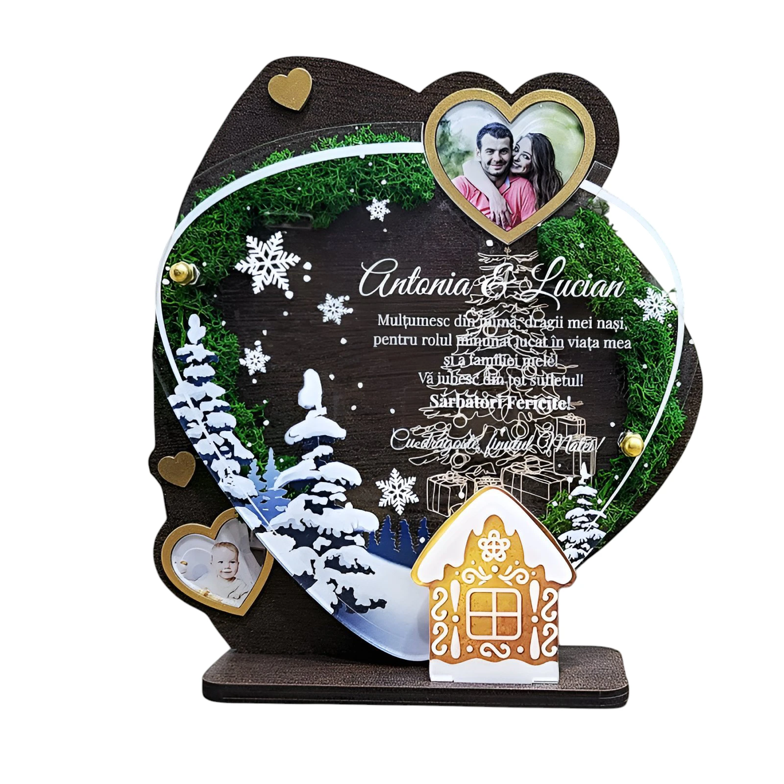 Cauți un cadou unic și special de Crăciun pentru nașii tăi de botez? Acest Trofeu cu licheni decorativi personalizat este un mod frumos și inedit de a-ți arăta aprecierea şi respectul. Perfect pentru a transmite un mesaj inspirat şi a-l personaliza cu fotografia sau numele naşilor, acest dar va fi cu siguranță prețuit în anii următori. De asemenea, este decorat special pentru a putea fi oferit în perioada sărbătorilor de iarnă.