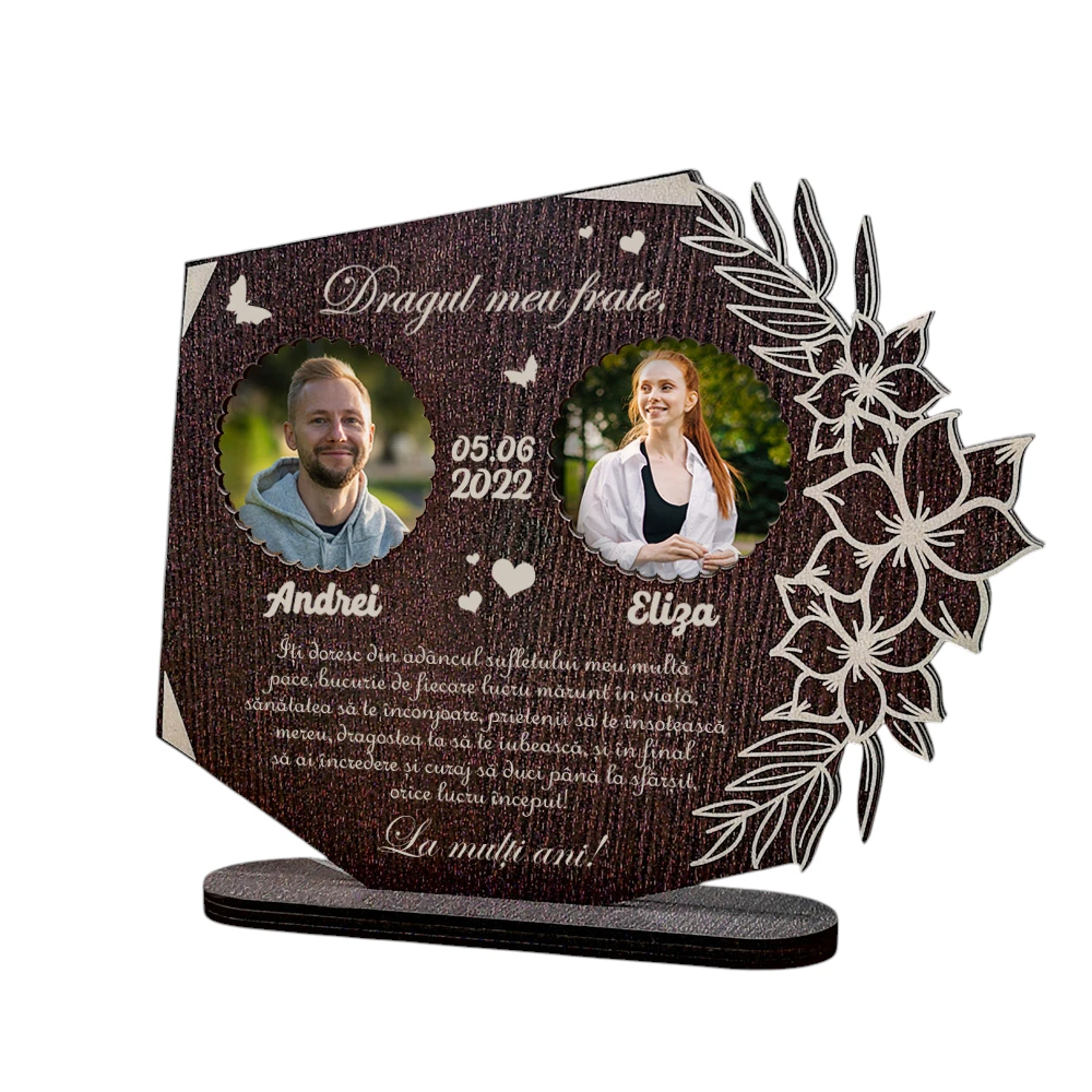 Sărbătorește legătura unică pe care o ai cu fratele tău printr-un cadou ce va rămâne memorabil. Acest trofeu personalizat, cu dimensiuni de 18×22 cm, este realizat din materiale de calitate, aducând o notă de eleganță și sinceritate. Cada detaliu al acestui produs reflectă natura specială a relației voastre, iar lichenii inspirați din natură oferă o senzație de puritate. Feedback-ul pozitiv al altor clienți confirmă că este o alegere apreciată pentru orice ocazie, fie că este vorba de o aniversare sau un cadou de Crăciun. Alege să oferi un trofeu care vorbește despre realizările fratelui tău și care îl va face să se simtă cu adevărat special.