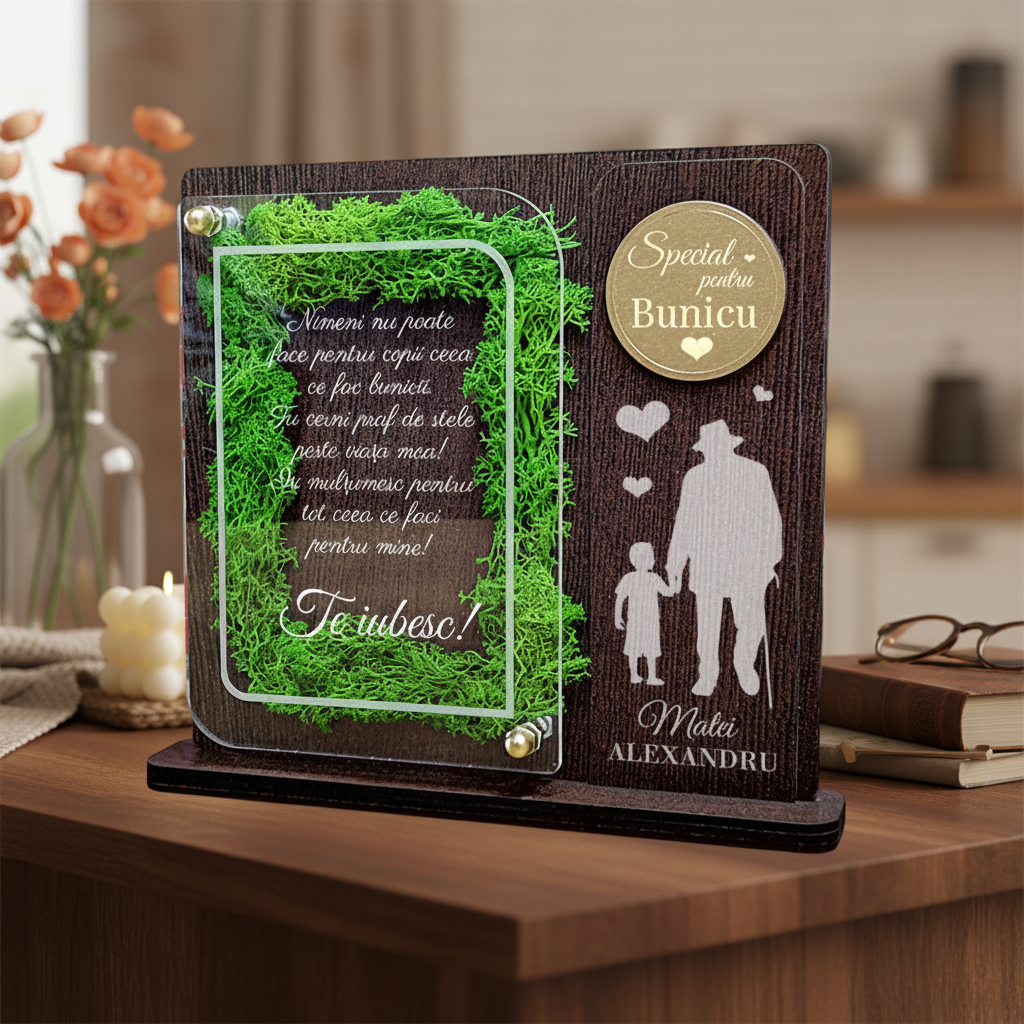 Fiecare ocazie specială merită să fie sărbătorită cu un cadou care să reflecte legătura unică dintre bunic și nepot. Alege un trofeu personalizat, decorat cu licheni, care nu doar că arată aprecierea ta, dar va deveni și o amintire deosebită în viața bunicului tău.