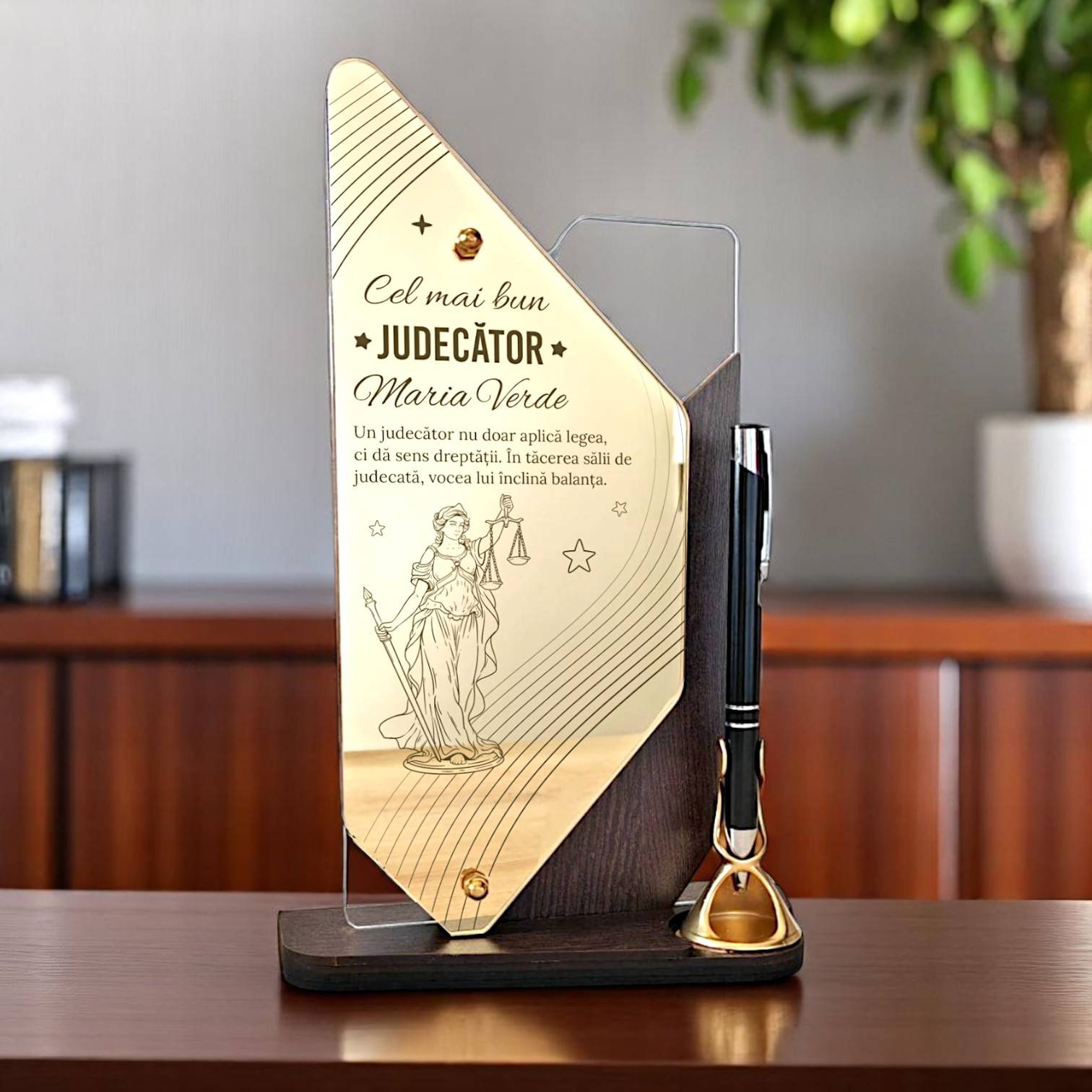 Daruri Alese Produse Ocazii speciale Cadouri profesii Trofeu personalizat gold cu pix – Pentru judecator