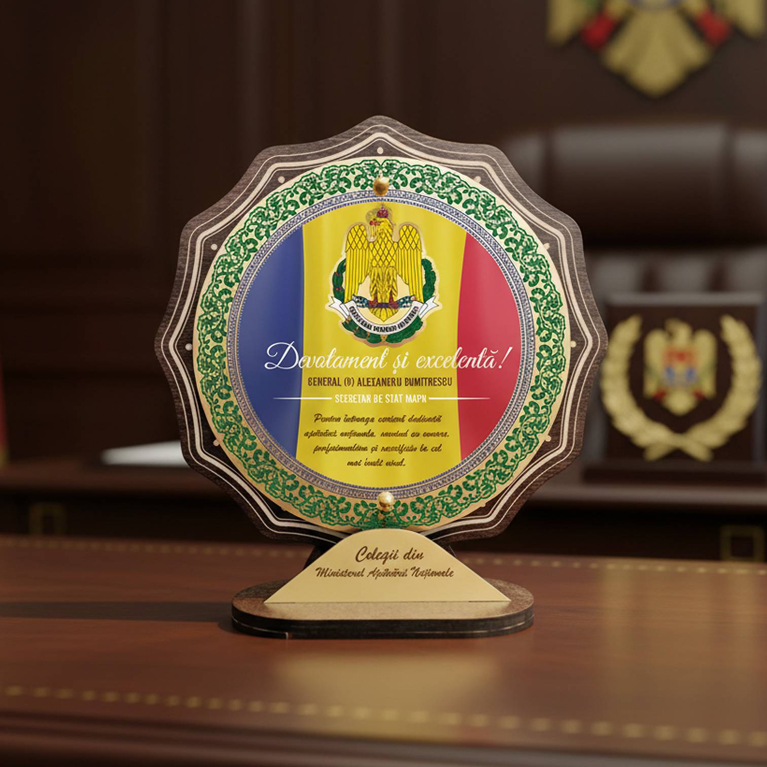 Realizat din materiale calitative precum pfl wenge, plexiglas și pfl vopsit gold, acest trofeu personalizat de 22×20 cm evidențiază atenția la detalii și tematica inspirată de valorile Ministerului Apărării Naționale. Poate fi personalizat cu gravare, logo sau siglă, devenind un simbol decorativ pentru birou sau casă, dar și o amintire aparte pentru cei care activează sau au activat în cadrul armatei. Mulți dintre cei care au optat pentru acest trofeu au apreciat finisajele și impactul vizual, aspect confirmat și în recenziile celor mulțumiți de alegerea făcută.