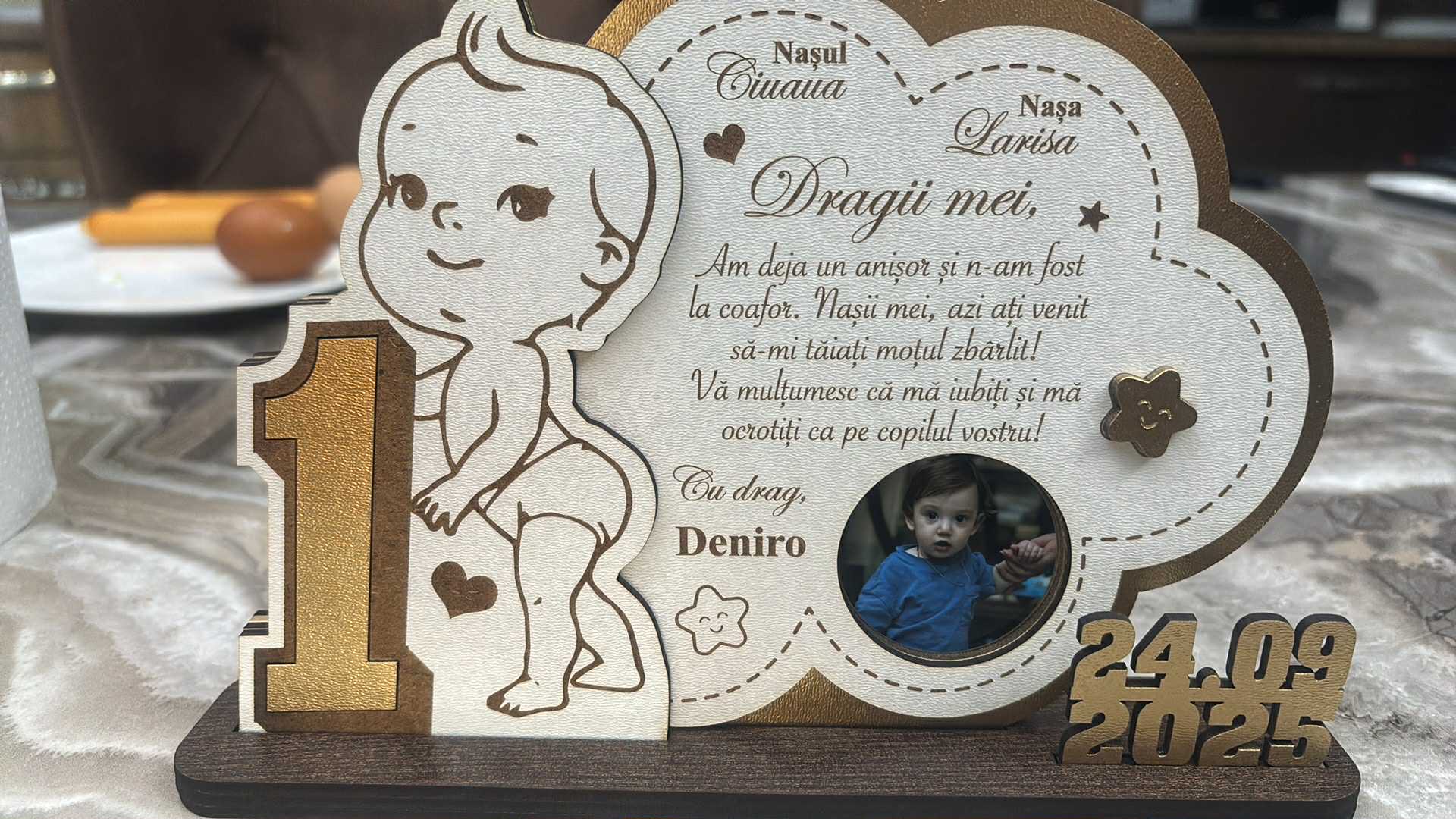 Un cadou superb pentru nașii copilului nostru.calitate impresionata dar și o echipa de excepție pe lângă toate acestea am primit și un cadou de la ei foarte frumos❤️
